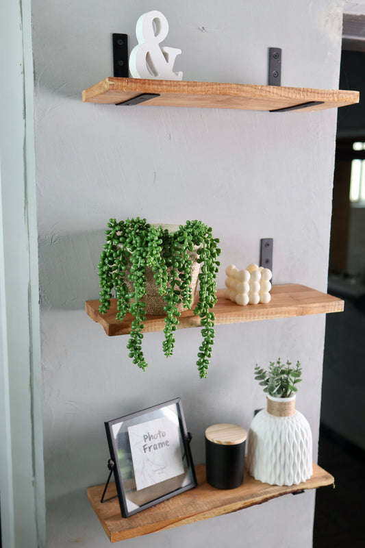 Rustic Handmade Floating Wooden Shelves | Rectangular Pine Wood shelf with Brackets | Length 30inch x 5 inch Depth x 1 inch Thickness